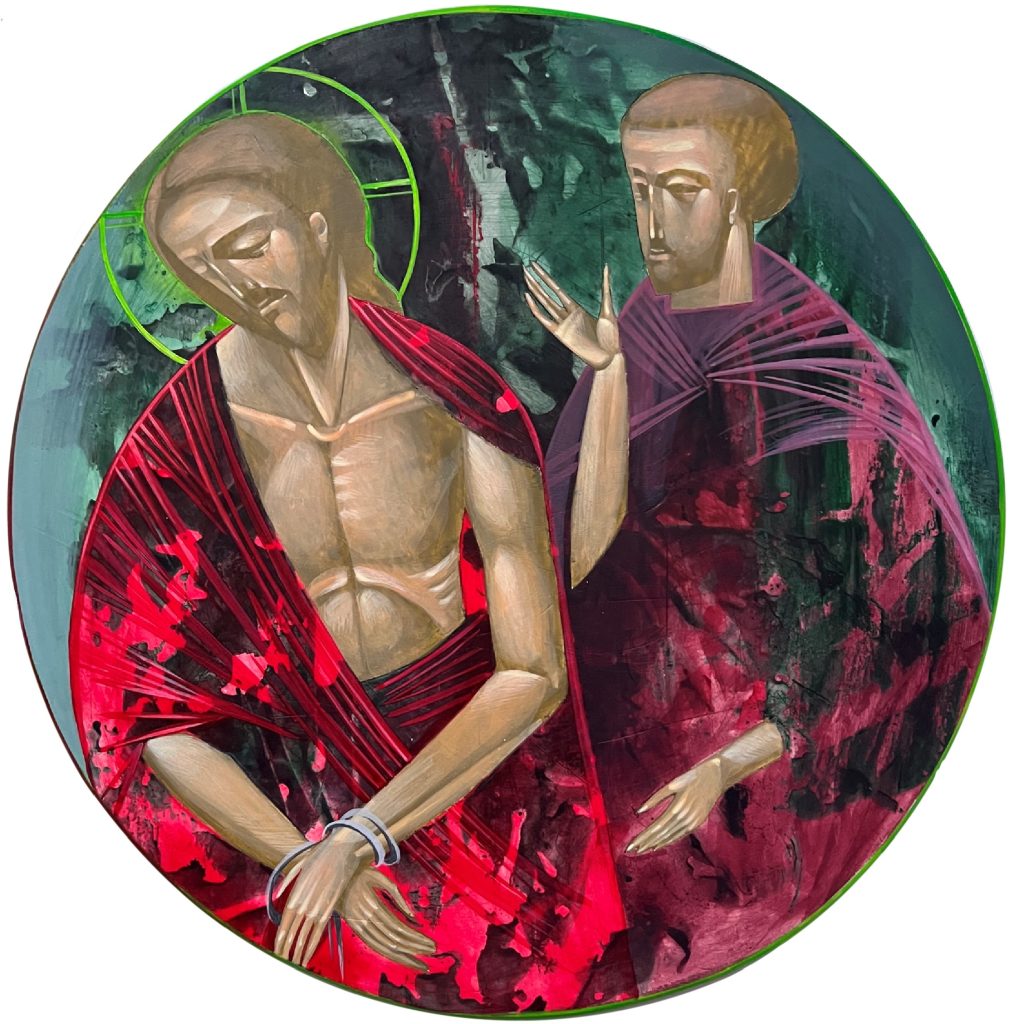 Following is a contemporary Ukrainian Orthodox icon of Christ and Pilate by Kateryna Shadrina.