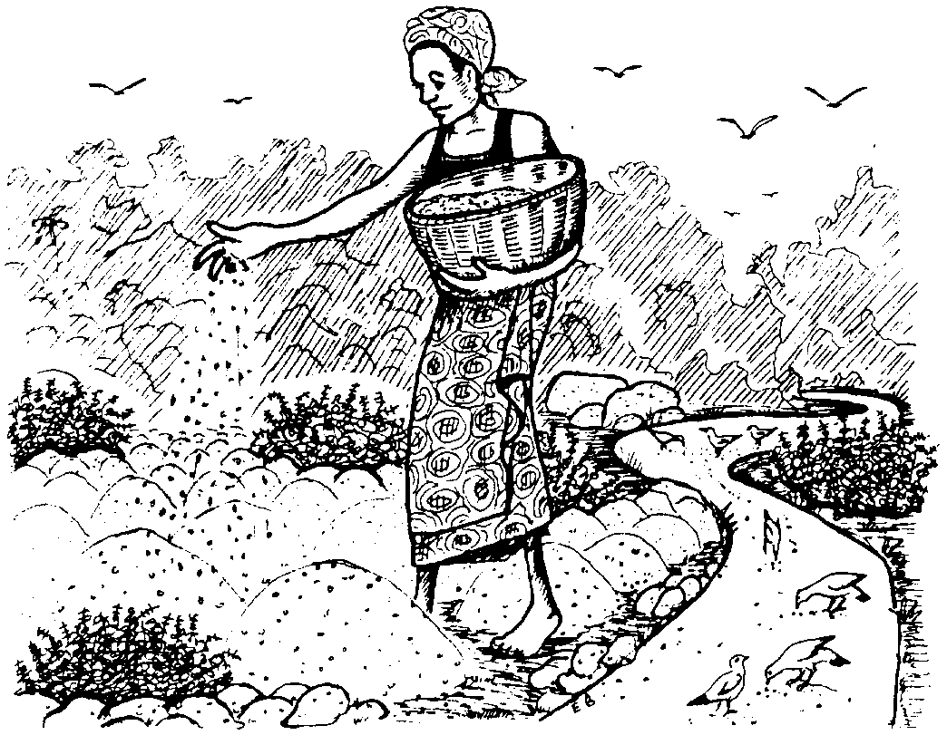 The parable of The Parable of the Sower is illustrated for use in Bible translations in West Africa by Wycliffe Cameroon like this: