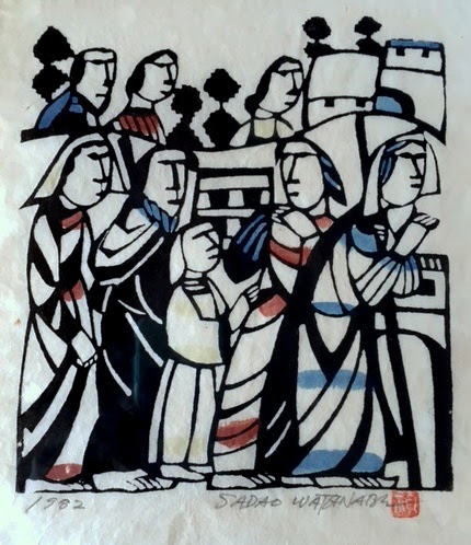 Image taken with permission from the SadaoHanga Catalogue where you can find many more images and information about Sadao Watanabe. For other images of Sadao Watanabe art works in TIPs, see here.